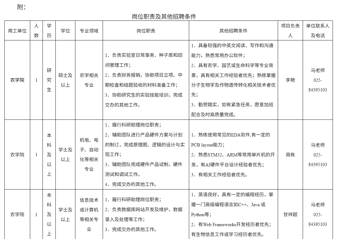 南京农业大学坐落于钟灵毓秀、虎踞龙蟠的古都南京,是一所以农业和生命科学为优势和特色,农、理、经、管、工、文、法学多学科协调发展的教育部直属全国重点大学,是国家“211工程”重点建设大学、“985优势学科创新平台”和“双一流”建设高校。经研究,现公开招聘科研助理7名。