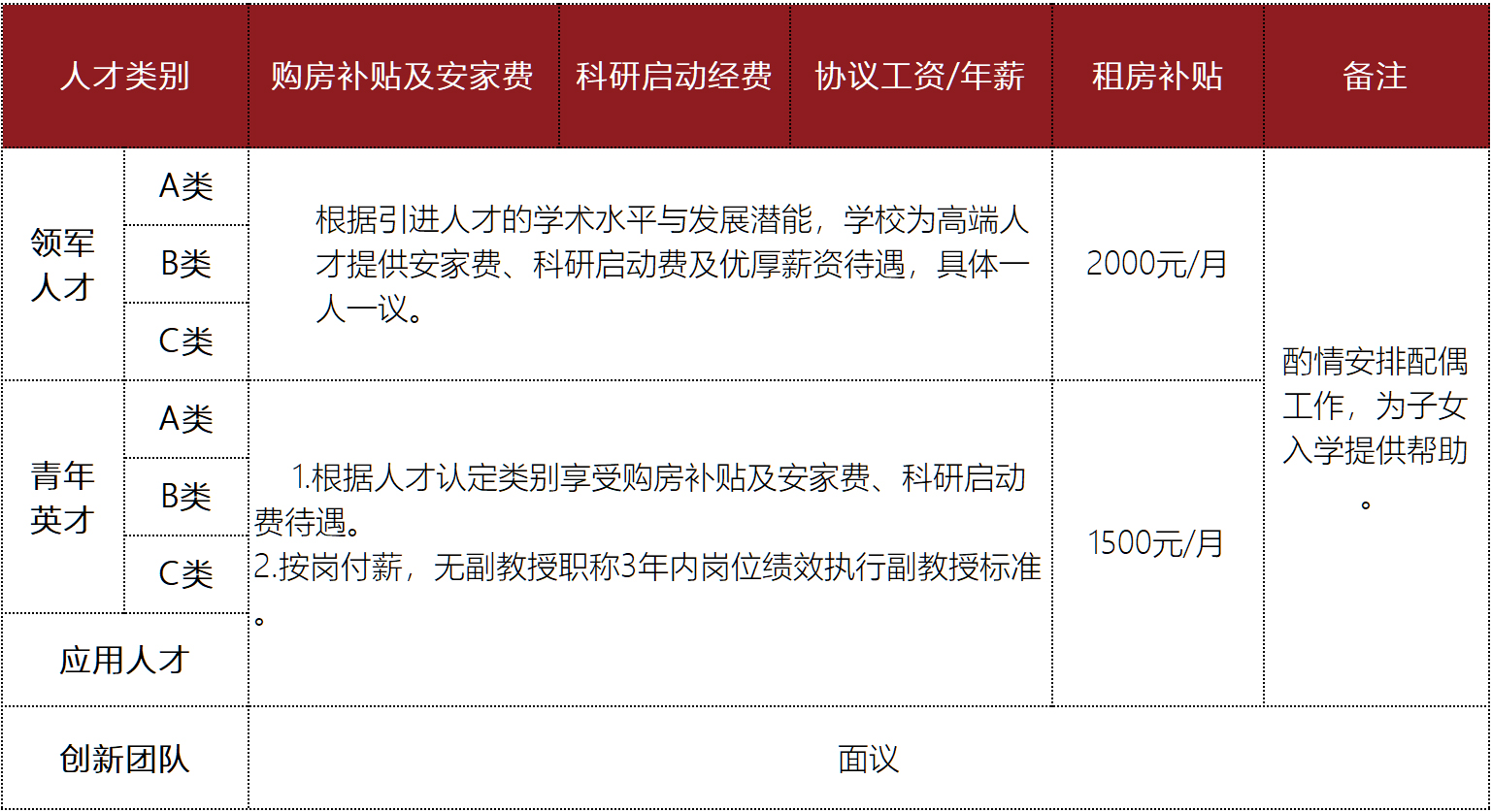 融入地方产业、企业的应用人才,具有博士研究生学历学位或正高级职称,能够胜任高校教师工作,在服务地方、培养学生应用能力等方面取得突出业绩,成果达到应用人才要求。年龄一般不超过40周岁,具有正高级专业技术职务者年龄不超过50周岁(条件特别优秀,年龄、职称可适当放宽)。