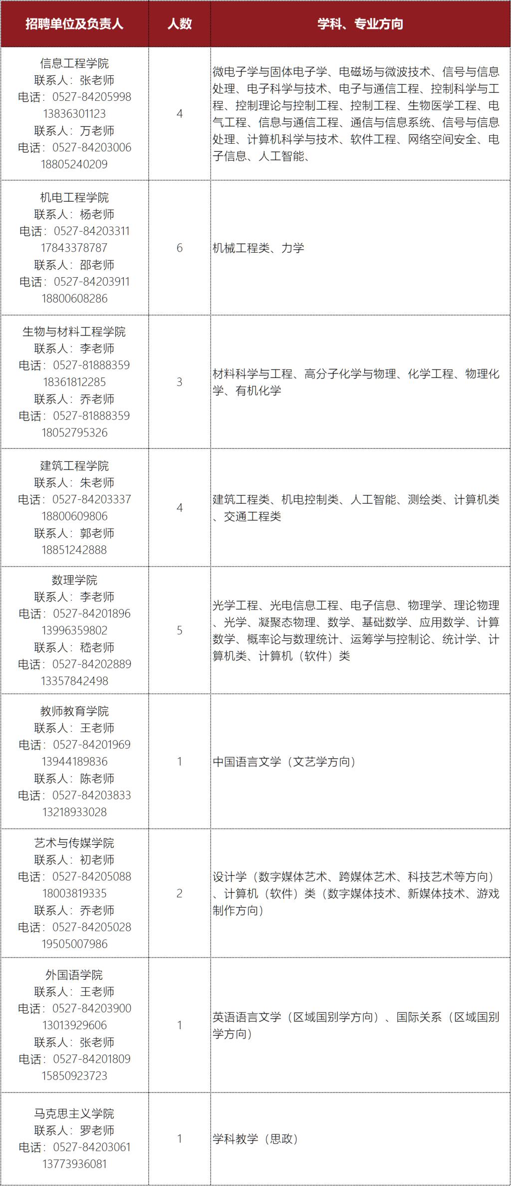 联系人:吴老师、赵老师或与人才需求信息表中相关学院工作人员联系。