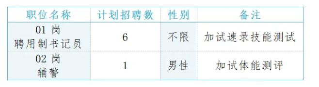 (6)聘用制书记员需掌握熟练打字等岗位必需的业务技能,辅警需体能测评合格;