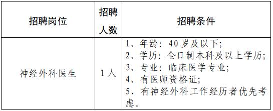 根据医院业务发展需求,现需招聘临床医生1人,具体招聘条件如下: