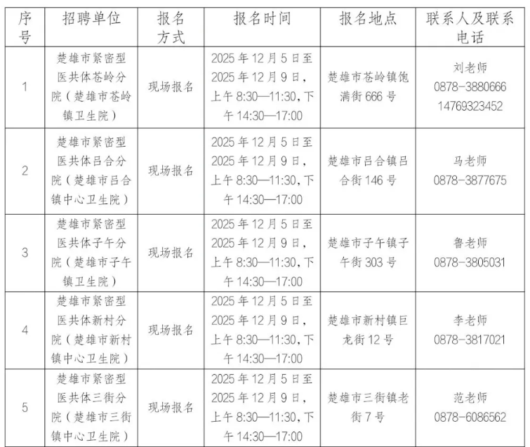 在楚雄市紧密型医共体公众号及各招聘单位微信公众号、公示栏等平台上发布。