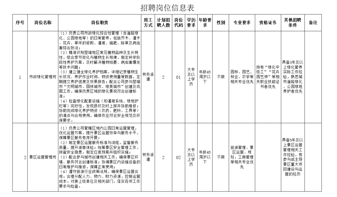 因我公司业务发展需求,经研究决定,面向社会公开招聘相关专业人员。本次招聘工作将由楚雄市人才发展集团有限公司(以下简称“楚雄市人才发展集团”)负责组织实施,具体事项公告如下: