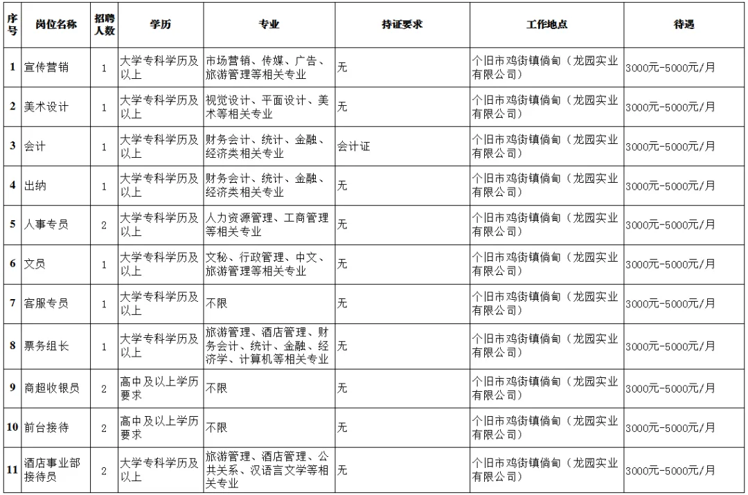 注:本次招聘未尽事宜由云南祺权劳务派遣有限公司负责解释且以求职面谈为准。