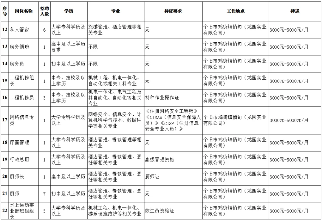 云南祺权劳务派遣有限公司招聘简章(派遣到个旧龙园实业有限公司)