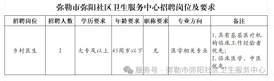 弥勒市弥阳社区卫生服务中心关于公开招聘城关卫生室乡村医生公告