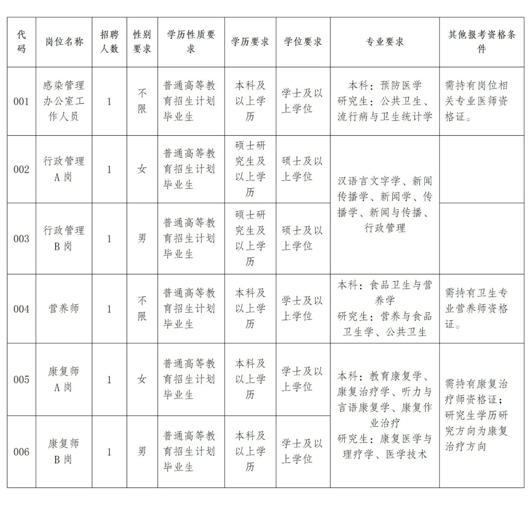 大理州妇幼保健院(州儿童医院、州托育综合服务中心)因工作需要,现面向社会公开招聘编外聘用人员6名。现将有关事宜公告如下: