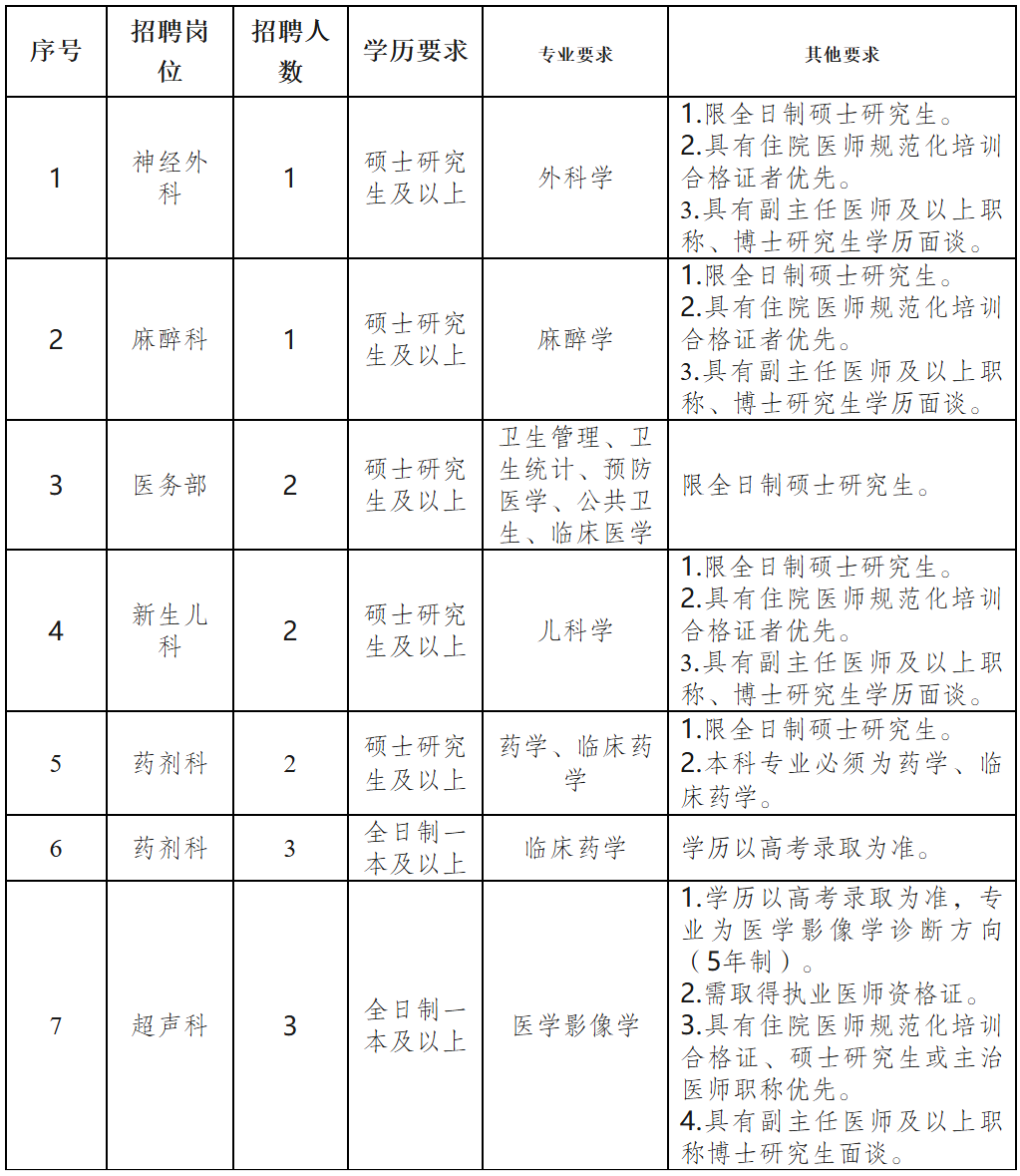 为推进医院高质量发展,经上级部门同意,招聘以下编外人员。