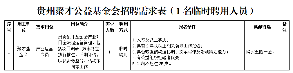 拟向社会招聘1名产业运营专员(临时聘用),招聘岗位及要求详见附件1。