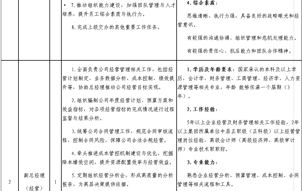 (三)熟悉现代企业制度和人力资源服务产业,具备履行岗位职责所必需的专业知识,有较强的决策判断能力、经营管理能力、沟通协调能力、处理复杂问题和突发事件能力,开拓创新精神和市场竞争意识强,实践工作经验丰富,工作业绩较突出。
