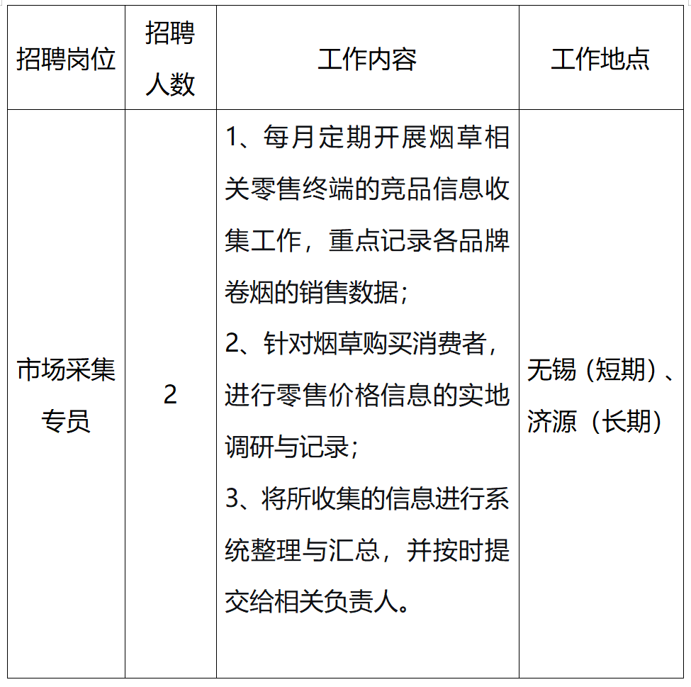 为满足公司项目发展需要,河南能源人力资源发展集团有限公司拟面向社会公开招聘信息采集专员2名。