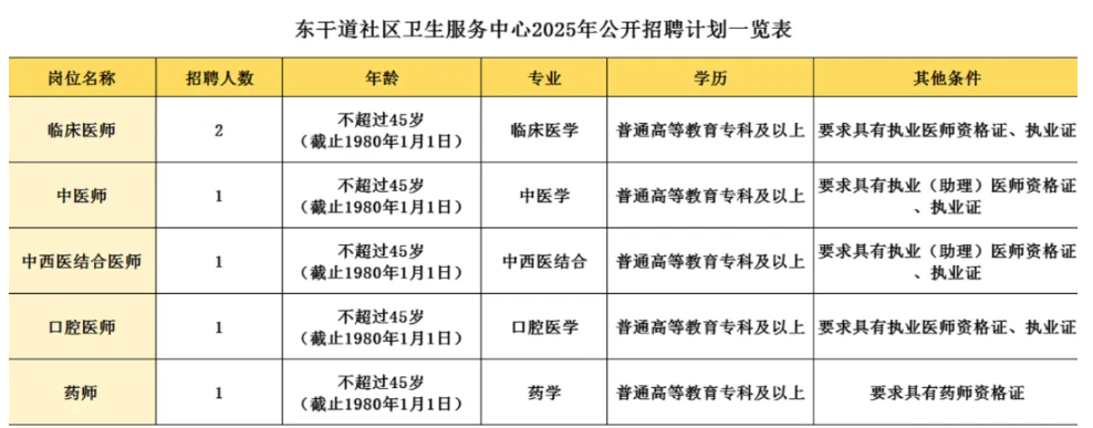 根据中心业务发展需要,现面向社会公开招聘以下执业医师和药师岗位:临床执业医师2名,中医执业(助理)医师1名,中西医结合执业(助理)医师1名,口腔执业医师1名,药师1名。