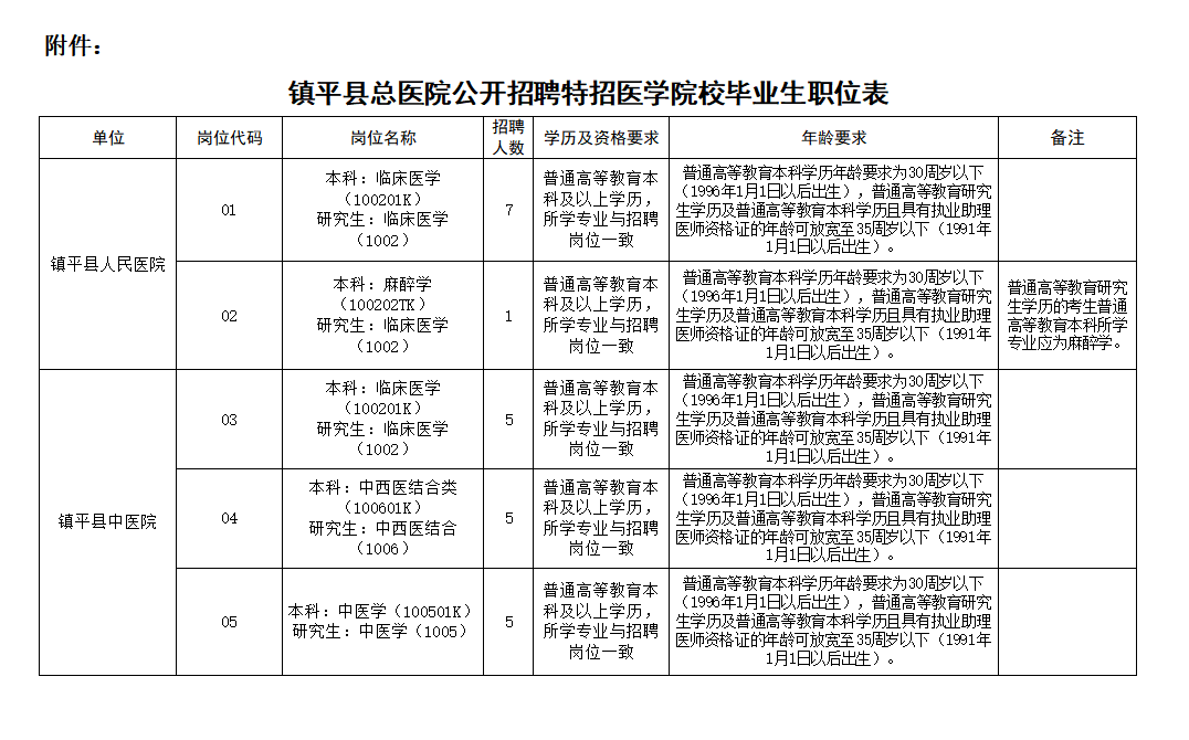 本次公开招聘医学院校毕业生23名。具体岗位设置参见《镇平县总医院公开招聘特招医学院校毕业生职位表》(见附件)