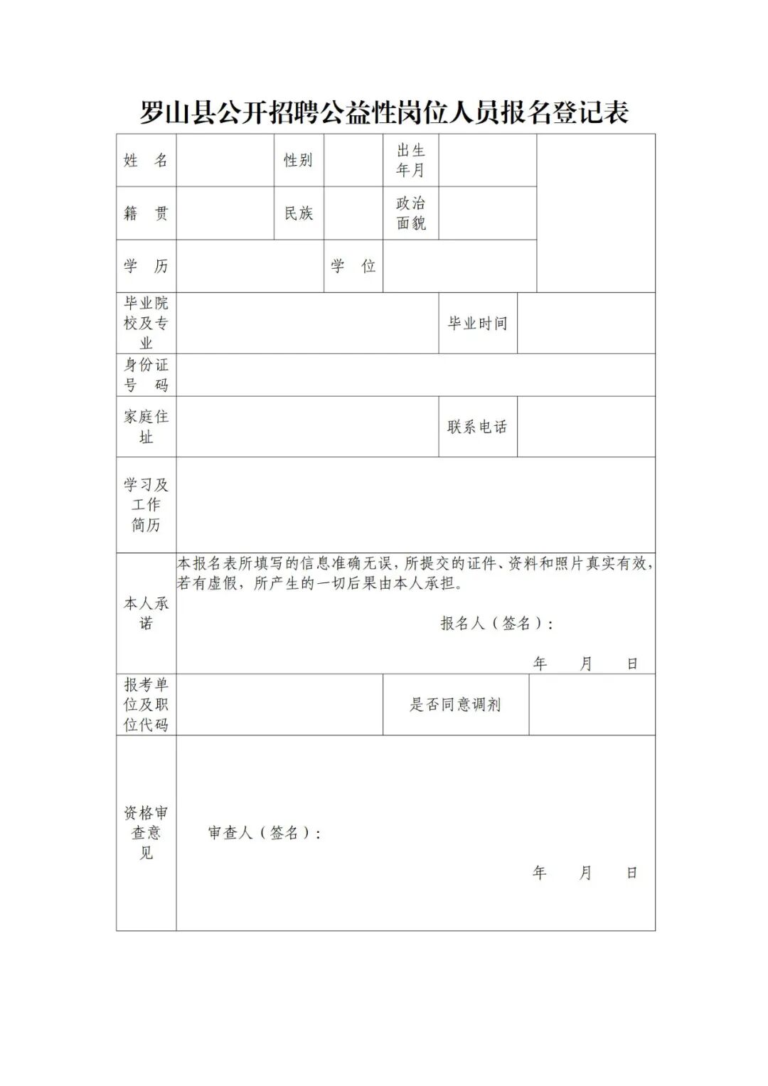 8、户籍要求:限罗山户籍;