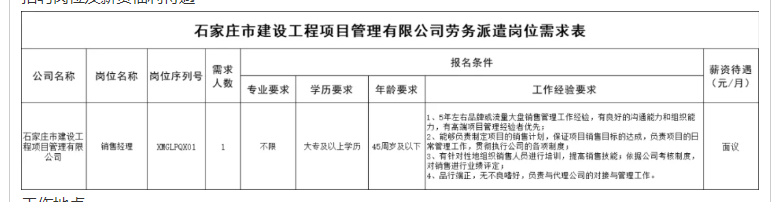 根据工作需要,石家庄市建设工程项目管理有限公司特委托石家庄市国经人力资源管理有限公司面向社会公开招聘劳务派遣制人员1名。