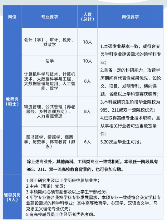 (三)硕士研究生及以上学历应往届毕业生;副教授及以上职称可适当放宽学历要求。