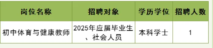 根据学校发展需要,我校将招聘1名编外初中体育与健康教师,具体要求如下: