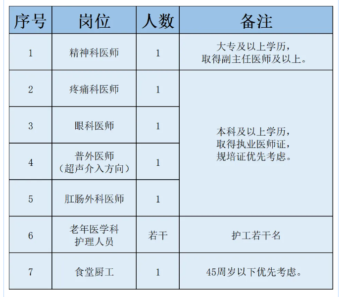 因医院业务发展需要,现招聘各岗位工作人员如下: