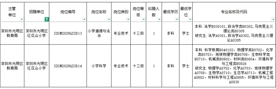 深圳市光明区红花山小学拟招聘教师: