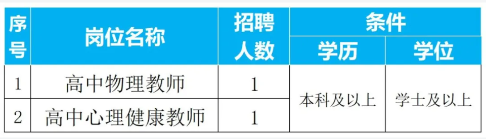 为适应学校教育事业的发展,进一步充实教师队伍,我校现面向全国招聘临聘高中物理教师1名、高中心理健康教师1名,具体招聘岗位如下: