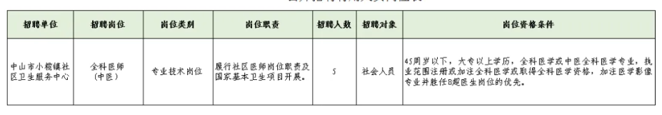 根据中山市小榄镇社区卫生服务中心发展需要,现决定面向社会公开招聘合同制工作人员。