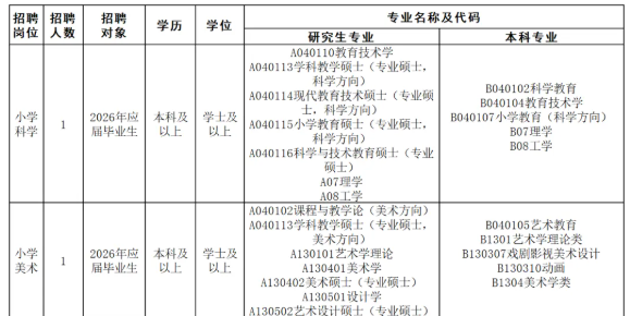 小学科学教师1名;
