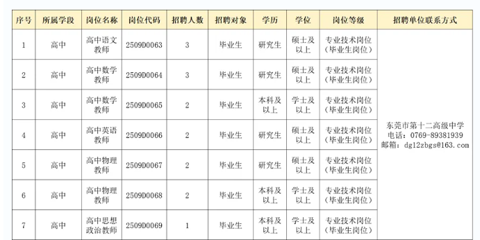 为深入贯彻落实广东省高质量发展大会精神和“百万英才汇南粤”行动计划,根据《广东省事业单位公开招聘人员办法》,围绕“粤聚英才、粤见未来”主题,东莞市教育局将在2025年下半年继续开展校园招聘系列活动,其中12月赴东北地区设点面向全国优秀毕业生公开招聘事业编制教师,我校在本次东北专场中,共计招聘事业编制教师15名。
