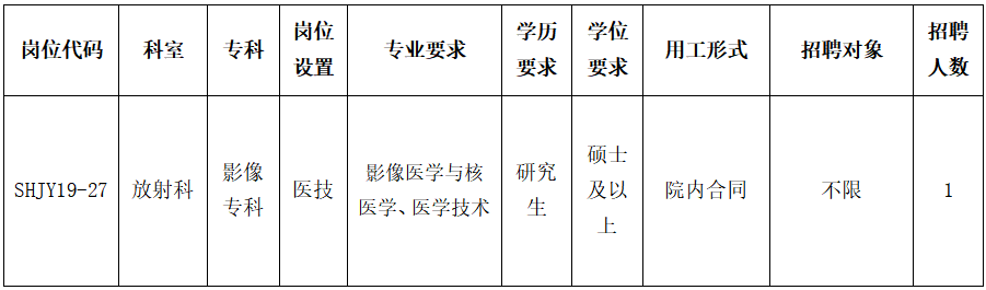 中山大学孙逸仙纪念医院深汕中心医院因工作需要,面向社会公开招聘放射科影像专科合同医技岗位1名,现将有关事项公布如下: