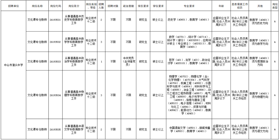 (三)符合报考条件的中山市生源的公费师范毕业生可不受报考岗位的学历学位要求限制,但专业或专业方向须与招聘岗位一致。
