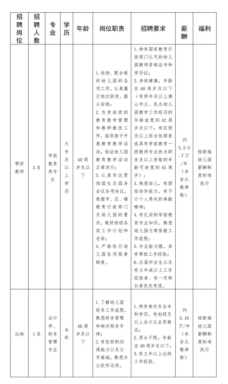 佛山市三水区大塘镇新城幼儿园位于大塘镇恒大御澜庭小区,是一所全日制公办幼儿园。现因幼儿园发展所需,按照公开、平等、竞争、择优的原则,面向社会招聘合同制员工,现将相关事项公告如下: