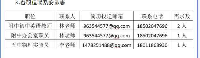 五中附中职位报考咨询电话: