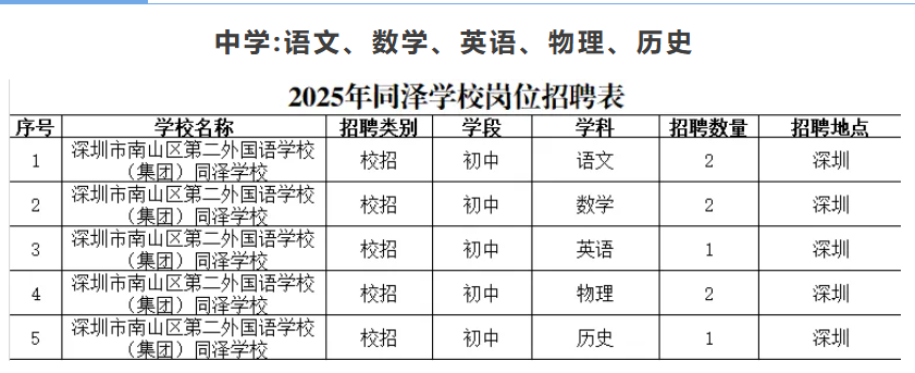 岗位具体信息以南山区教育局发布的公告为准