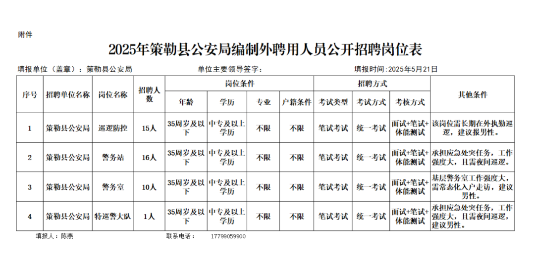 5.国家和策勒县公安局规定的其他优先招聘情形。