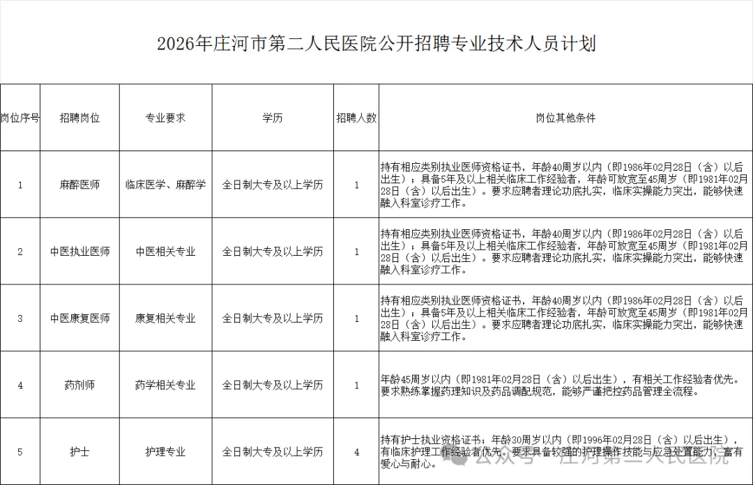 本公告所列招聘事宜,解释权在庄河市第二人民医院。