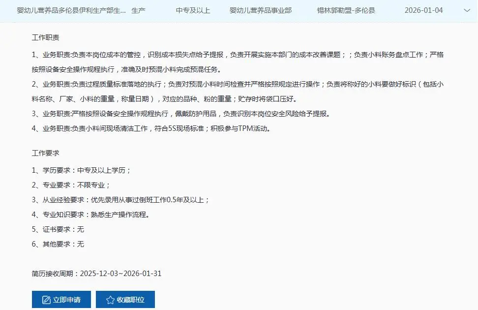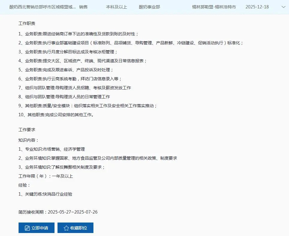 伊利集团社会招聘若干人