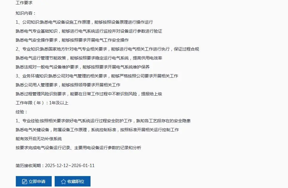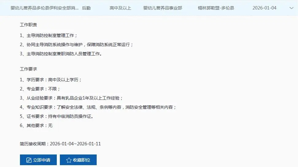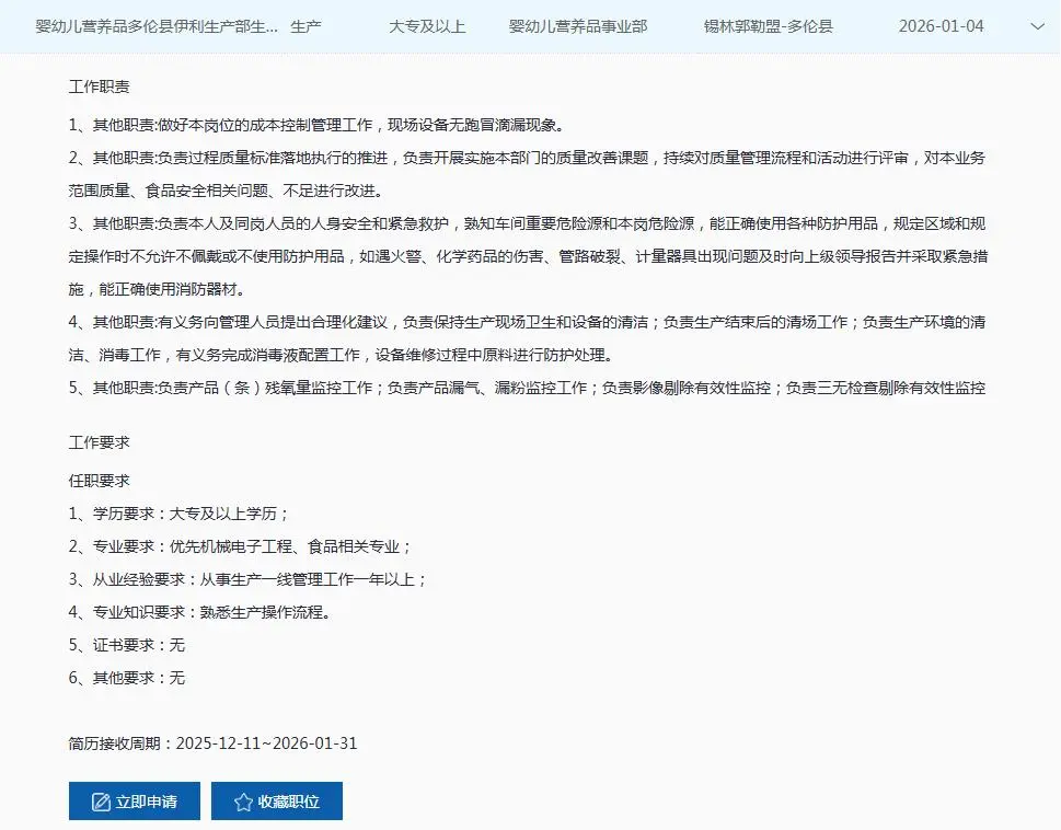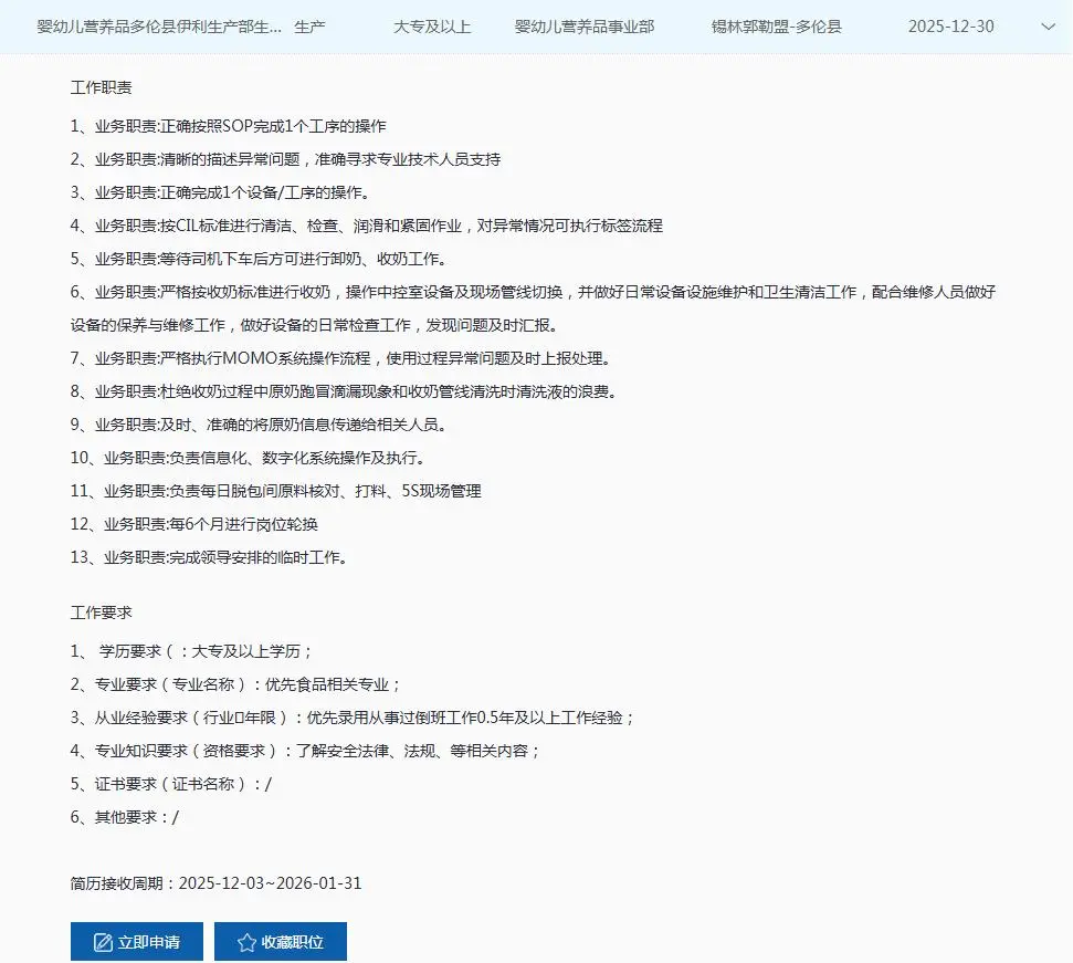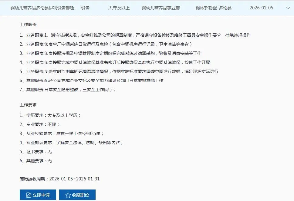 锡盟地区岗位及具体要求