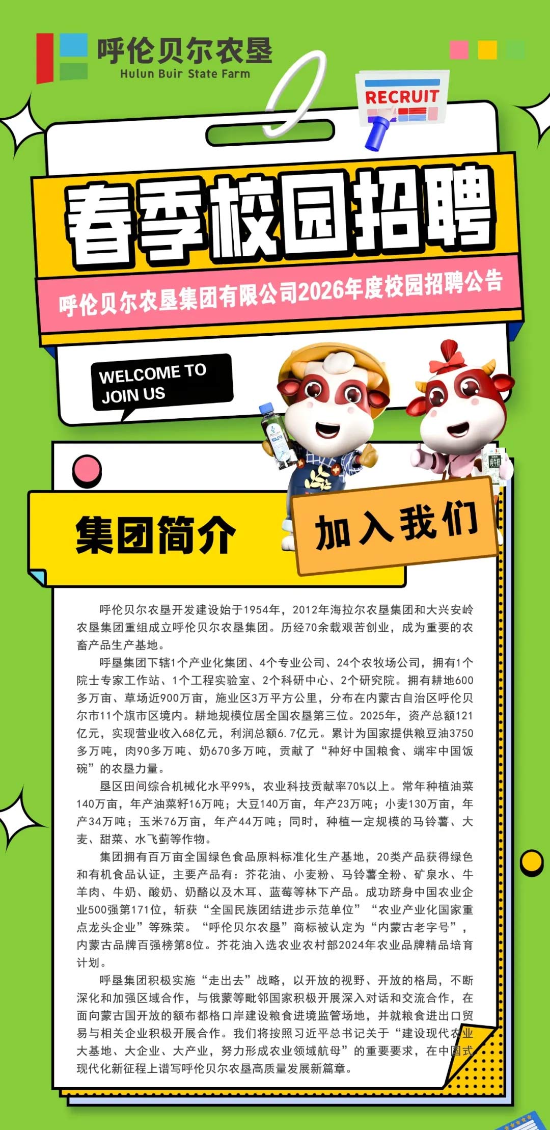 呼伦贝尔农垦集团有限公司2026年度校园招聘公告
