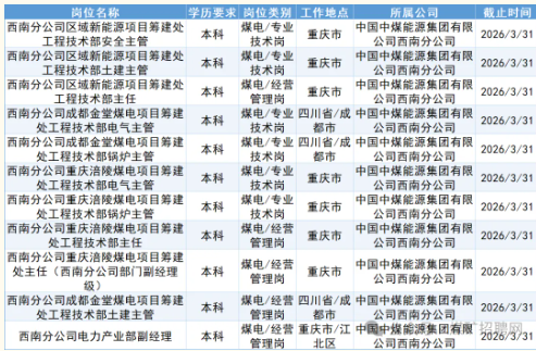中国中煤能源集团有限公司西南分公司(简称西南分公司)于2023年2月在重庆市注册成立,是中国中煤直接管理的区域分公司,与四川分公司实行“一套人马,两块牌子”运营,下辖中煤广元能源有限公司、中煤绿能(鲁甸)新能源有限公司、中煤绿能(广元)新能源有限公司、中煤广元元宝山铁路运输有限公司、中煤绿能(重庆)能源有限公司、中煤(重庆涪陵)能源发展有限公司、中煤普洱新能源有限公司等8家企业。