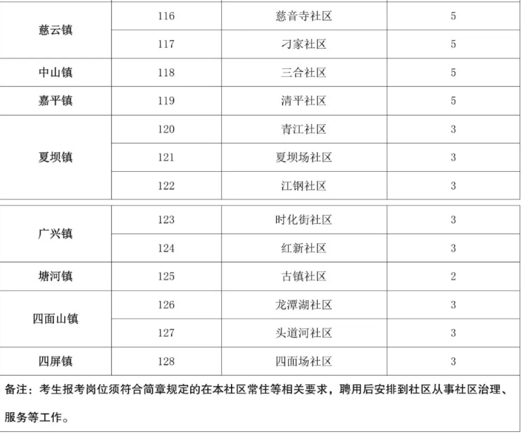 本次拟面向社会公开招聘社区专职工作人员后备人选642名,同步建立后备人选库,具体岗位及人数详见《江津区2026年公开招聘社区专职工作人员后备人选岗位一览表》(见附件)。出现社区专职工作人员空缺时,按规定从后备人选中动态补充人员,具体流程详见本简章第六条。