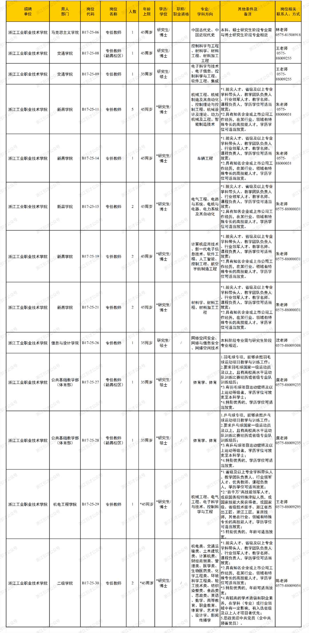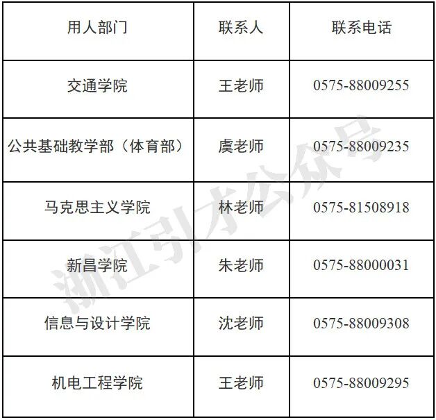 (二)人事处联系电话:0575-88009054(陈老师)、0575-88009045(金老师)。