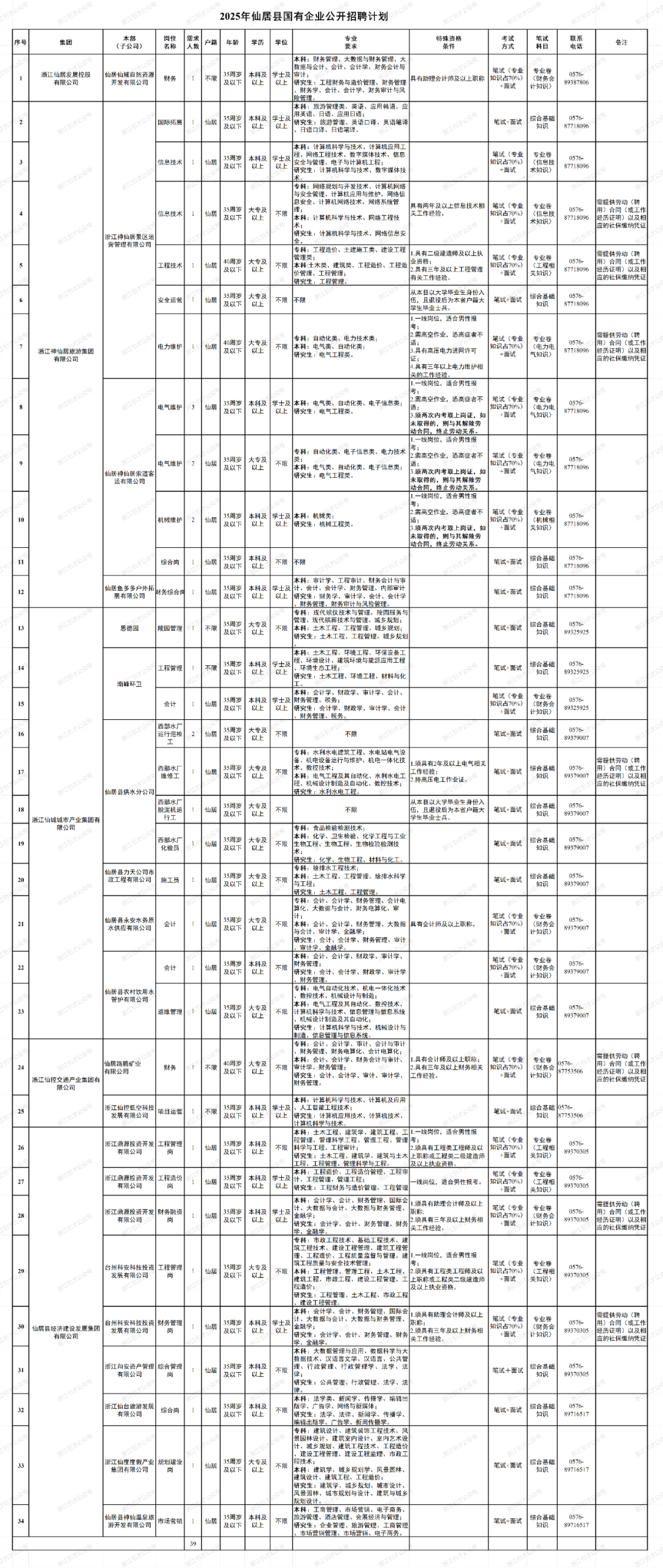招聘39人34个岗位