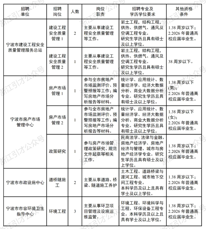 根据《宁波市事业单位公开招聘工作人员实施办法》等有关规定,宁波市住房和城乡建设局所属部分事业单位决定公开招聘事业编制工作人员。现就有关事项公告如下: