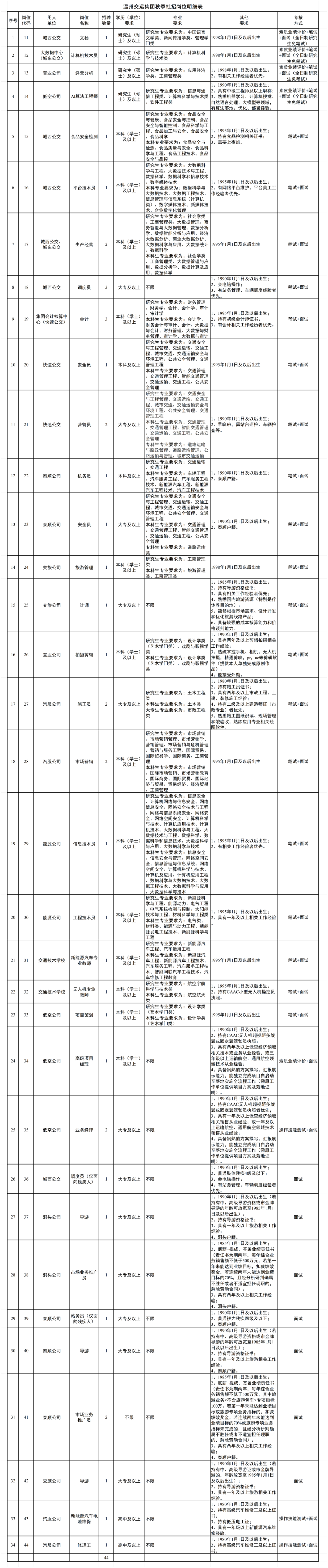 因工作需要,温州交运集团决定面向社会公开招聘44名工作人员。现将有关事项公告如下: