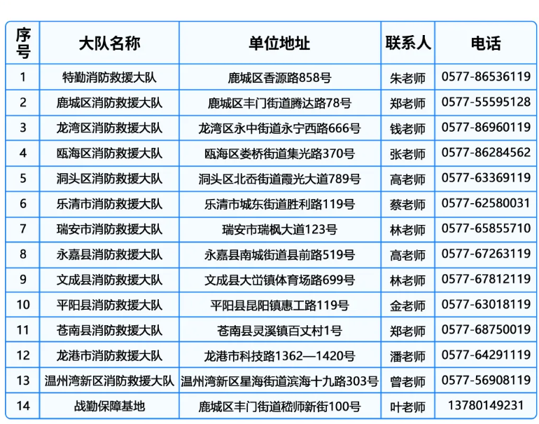 采用线下报名方式,请在报名日期截止前,联系各县(市、区)消防救援大队报名并提供报名资料。各大队报名地址及联系方式: