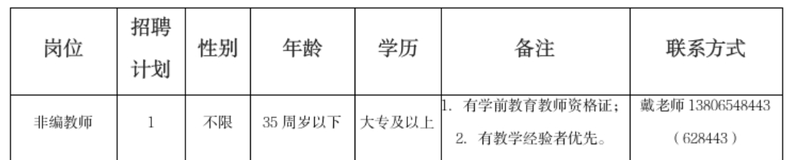 因工作需要,温州市洞头人才发展有限公司决定面向社会公开招聘外包员工1名,派往洞头区教育幼儿园工作。现将招聘工作有关事宜公告如下: