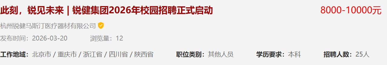 •缝线技术工程师,工作地点:杭州