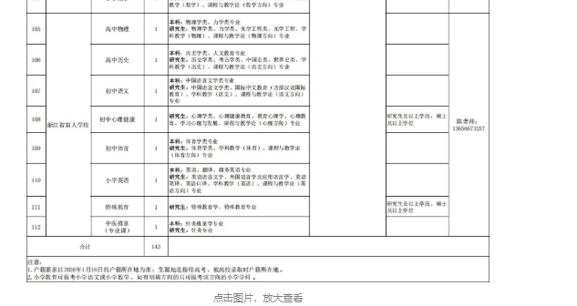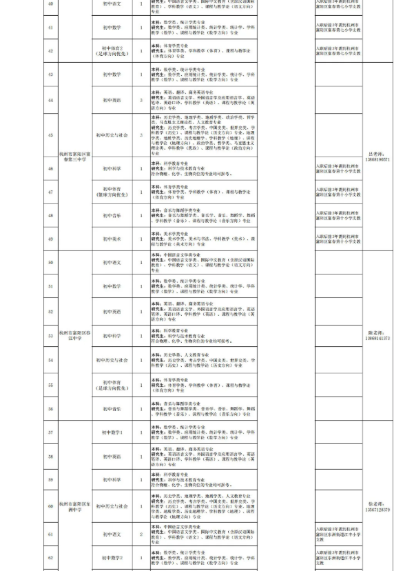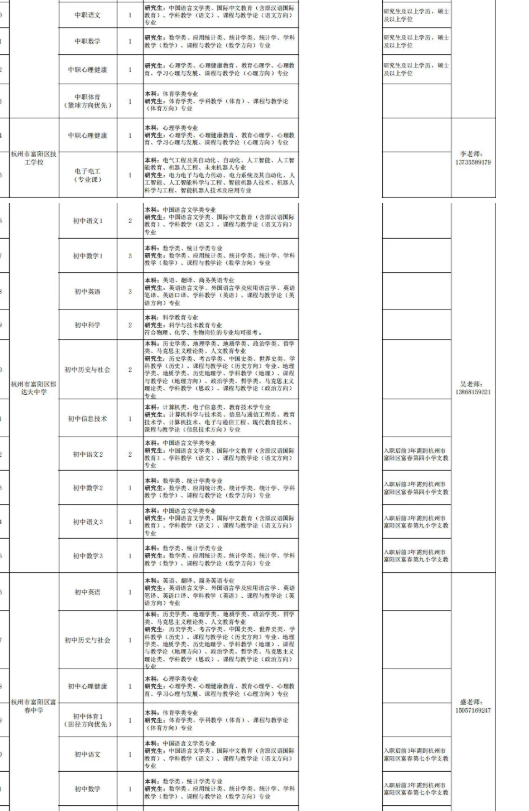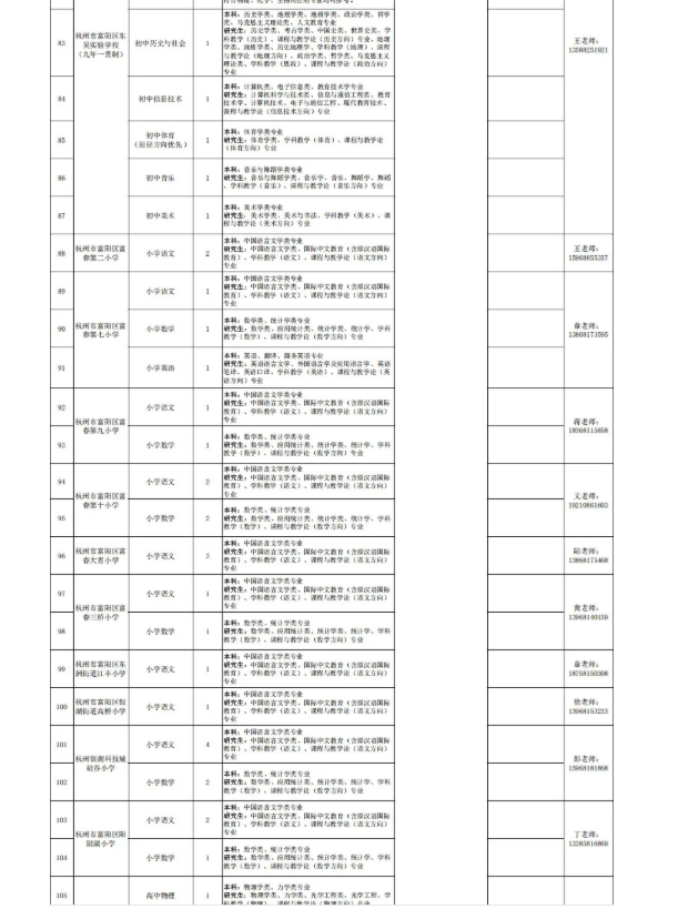 本次招聘教师143名,其中普高18名,职高10名,初中80名,小学27名,浙江省盲人学校8名,具体岗位及相关要求见《杭州市富阳区面向2026年优秀应届毕业生招聘中小学教师的公告》(以下简称《岗位计划表》)。