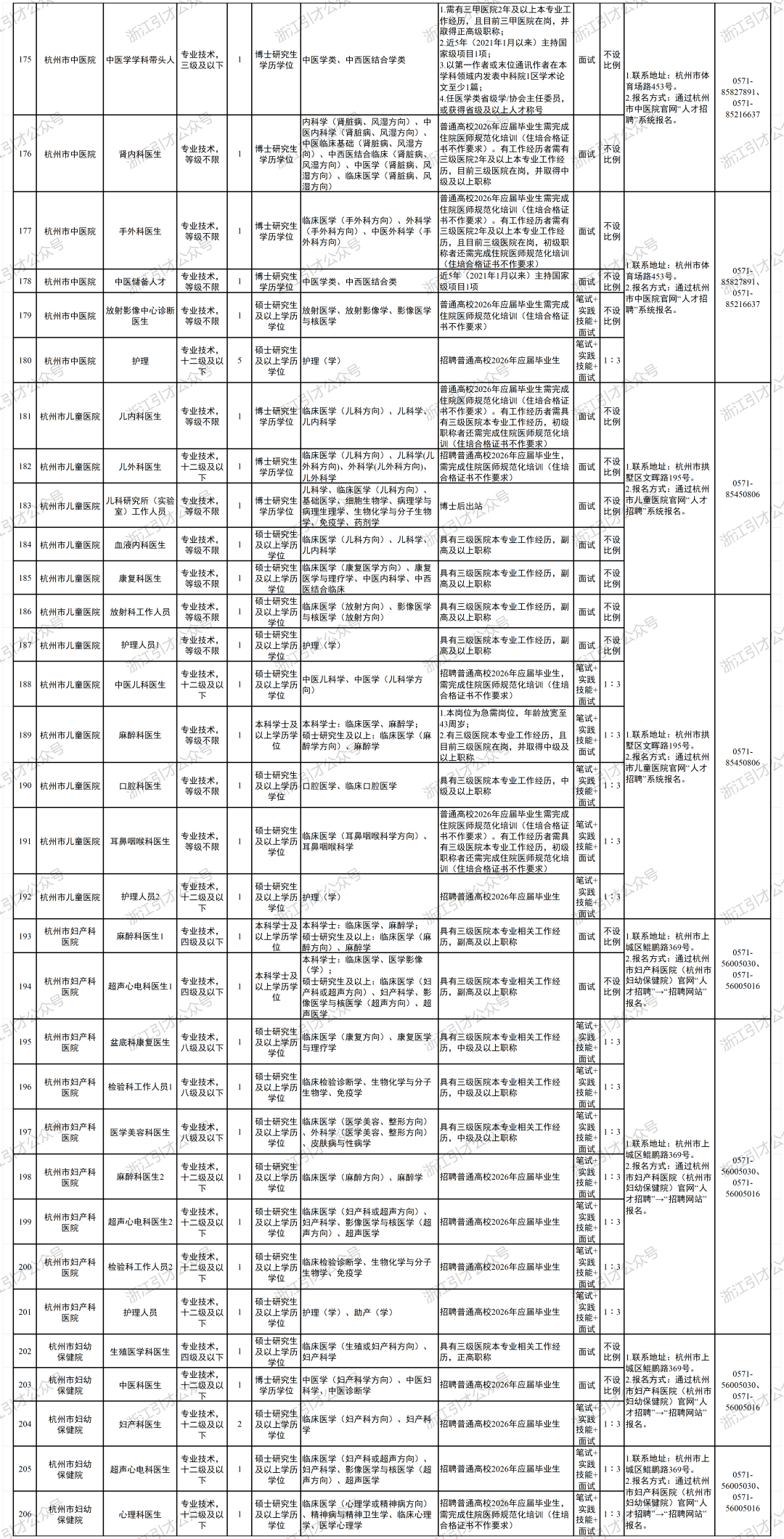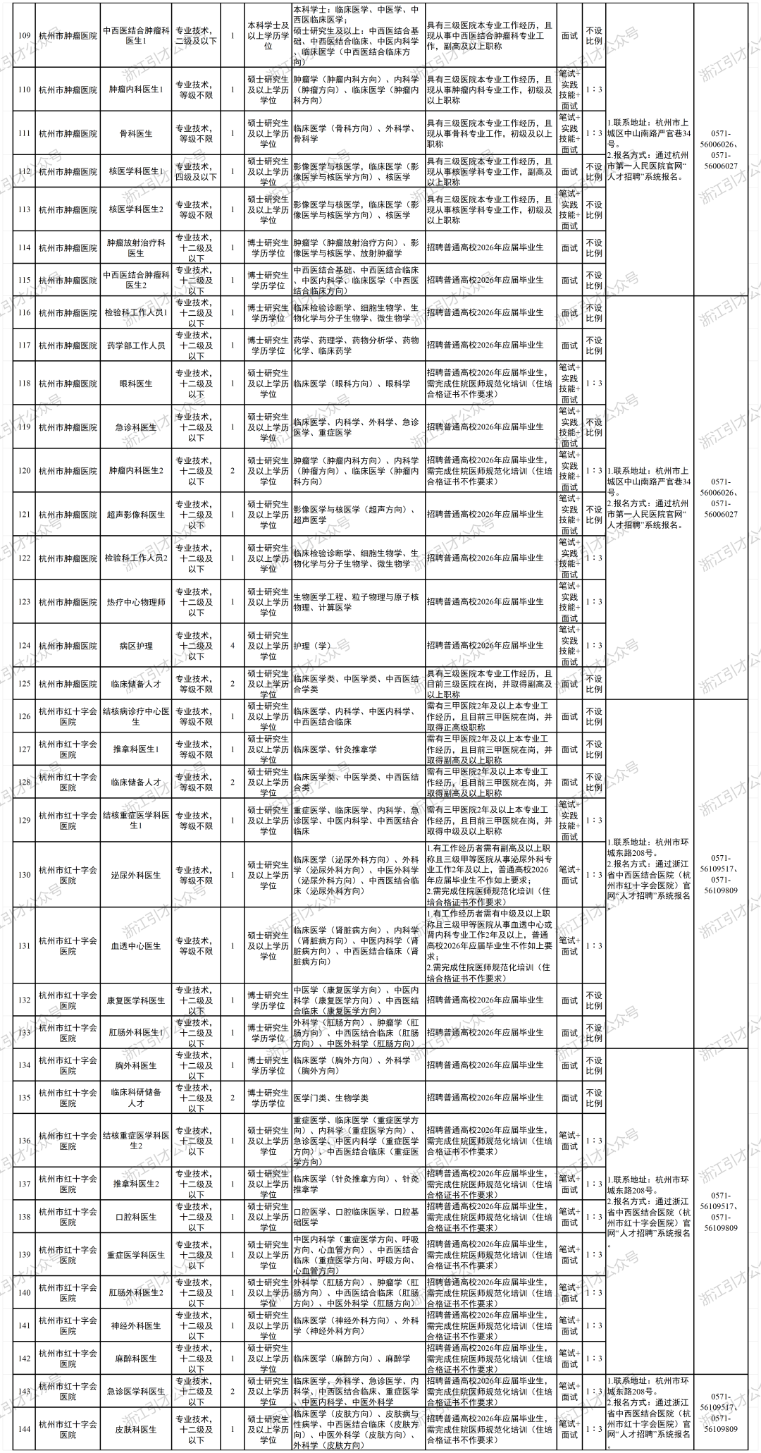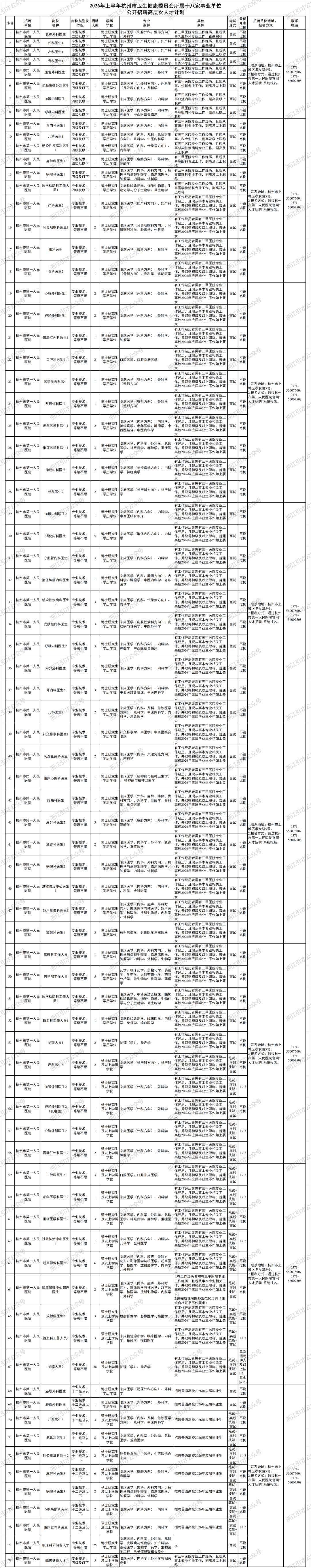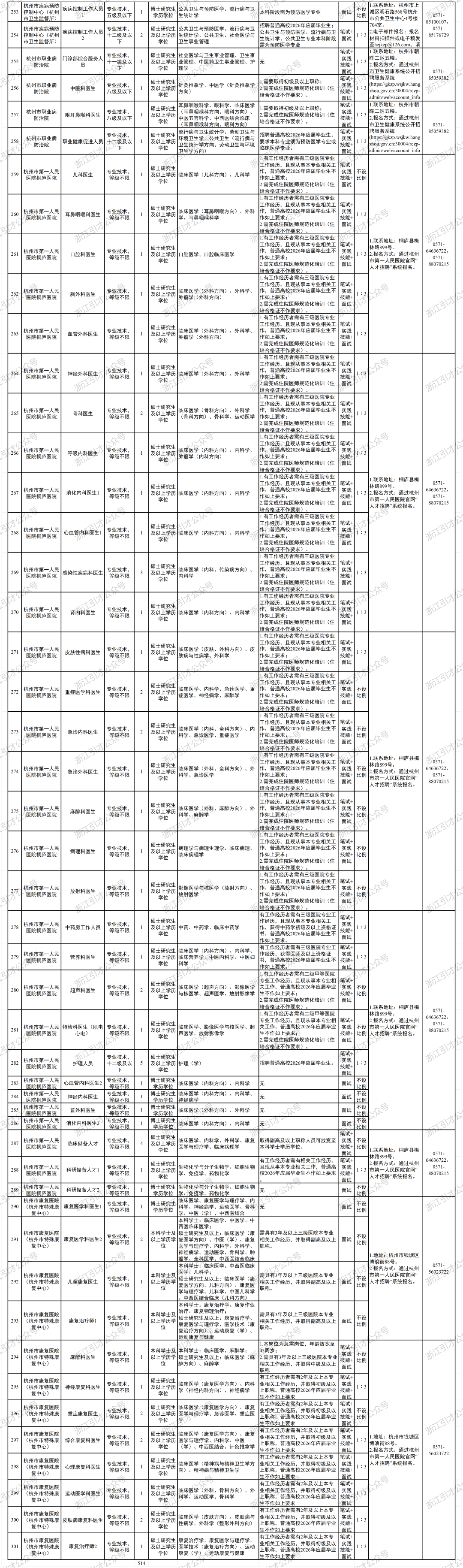根据工作需要,杭州市卫生健康委员会所属杭州市第一人民医院、杭州市第三人民医院等18家事业单位决定面向社会公开招聘高层次人才514名。按照《中共中央组织部人力资源社会保障部关于进一步做好事业单位公开招聘工作的通知》(人社部发〔2024〕57号)和《关于进一步做好浙江省事业单位公开招聘工作的通知》(浙人社发〔2024〕72号)等文件规定,现将有关事项公告如下: