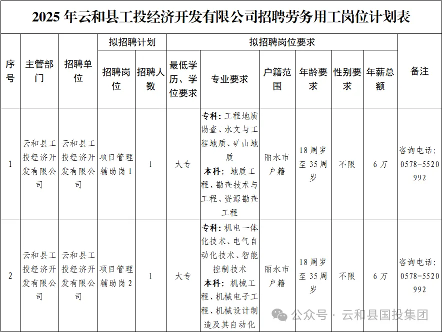 2025年云和县工投经济开发有限公司招聘劳务用工公告