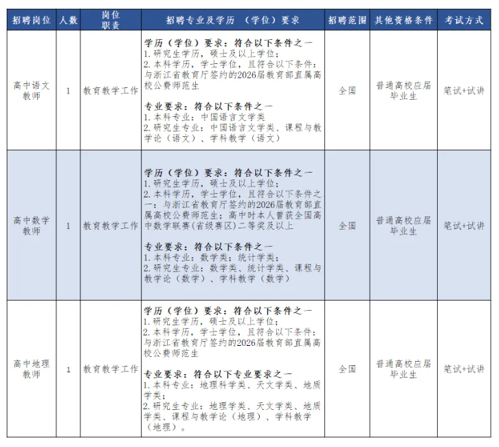 根据《宁波市事业单位公开招聘工作人员实施办法》和宁波市教育局《关于宁波市教育系统事业单位公开招聘工作人员的实施意见》的有关规定,宁波市鄞州高级中学拟面向全国公开招聘事业编制语文、数学、地理教师各1名。